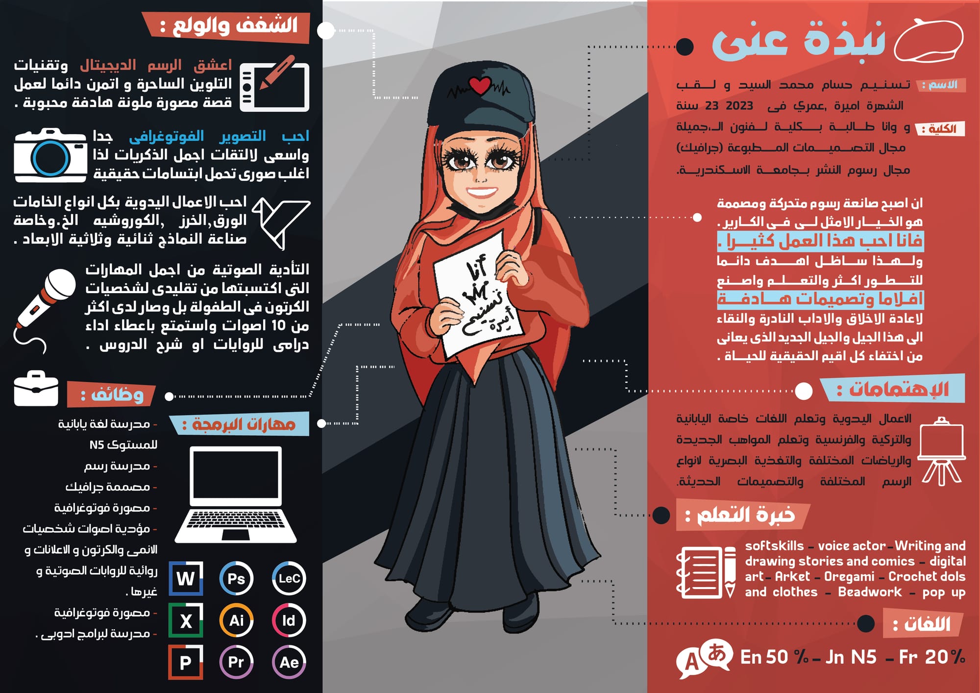 Creating voice acting for cartoon characters, dubbing, creating voices for advertisements and radio broadcasts, spontaneous and fun voice acting, character embodiment, and adding lively vocal tones.